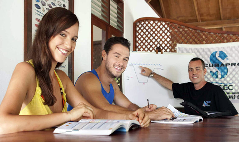 08:00 Học viên sẽ được chào đón tại Văn phòng bởi Huấn luyện viên của mình, hoàn tất các thủ tục cần thiết. Bắt đầu xem DVD và thực hành tại hồ bơi.